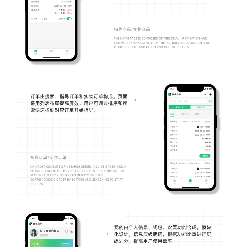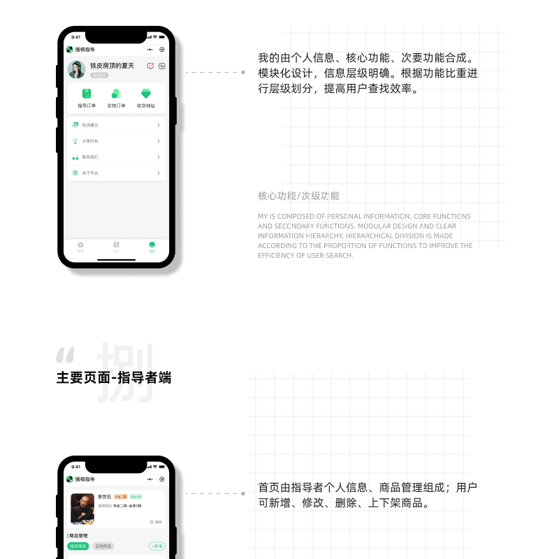 指导者端为围棋教练和专家提供了一个展示才华和传授知识的平台。功能包括: