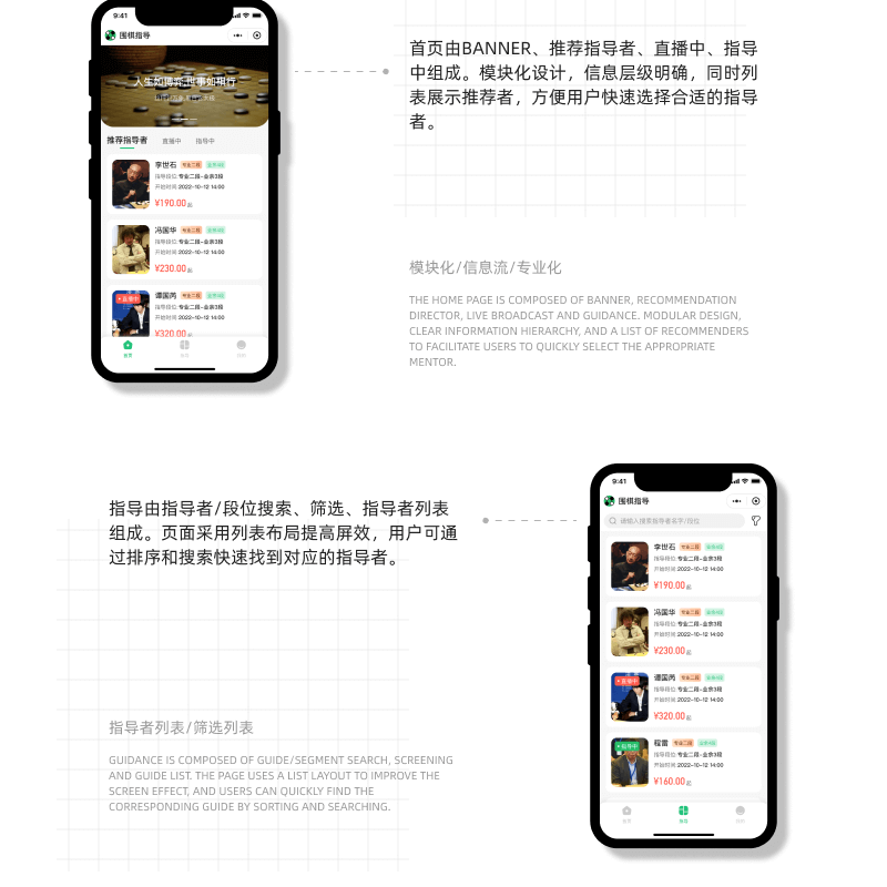 2. 推荐指导者:根据用户的水平和需求,推荐合适的围棋指导者,方便用户选择合适的老师进行学习。