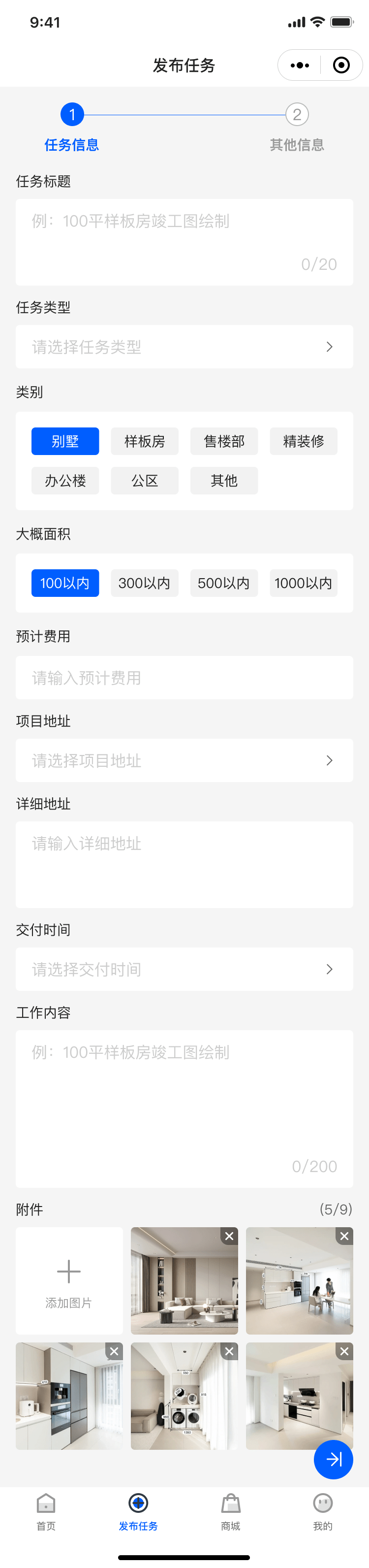对于有装修需求的用户,该平台也提供了便捷的发布需求的途径。用户只需注册平台,即可发布自己的装修需求,包括项目类型、项目面积、项目地址、现场图片、交付时间、设计要求、设计师资历、设计要求、费用预算等。这样一来,用户的需求可以更精确地传达给设计师,提高双方沟通的效率。