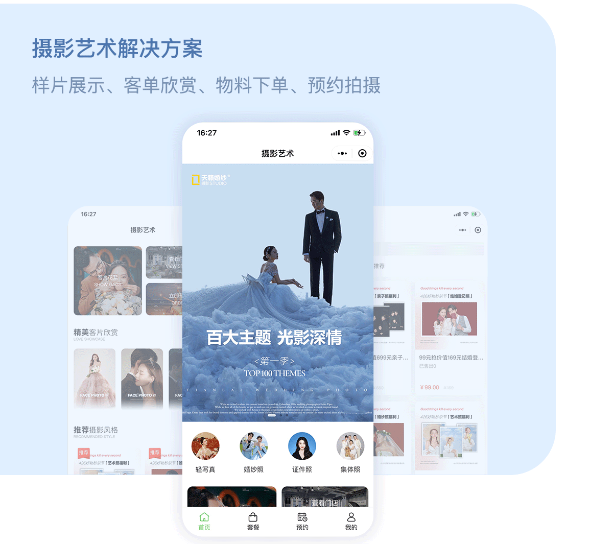 世界上有一种美好,叫做回忆。有一种让回忆落脚的方式,叫做照片。从企鹅朋友圈的变化,大家可以看到,图片仍然是人们记录瞬间,回忆过去的主要方式。所以,摄影行业,不管是现在,还是将来,都会有很好的发展。摄影行业的发展,带动了摄影机构、摄影工作室、独立摄影师也在不断地进行创新和发展。为了满足消费者对于便捷、个性化的摄影服务的需求,痴女 非常看好摄影行业,并且凭借自己技术专业上的优势,为摄影机构和工作室量身打造了一款全能的摄影小程序。这款小程序不仅包含了轻写真、婚纱照、证件照、集体照等多种栏目,还提供了在线预约、照片云打印等功能,为用户提供了一站式的摄影服务体验。