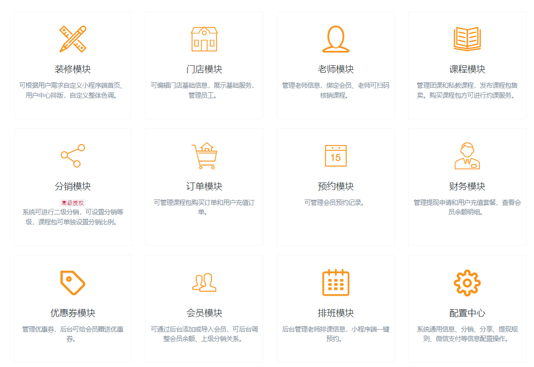 订单模块是这款小程序的基础功能之一。您可以管理课程包购买订单和用户充值订单。这样,您可以方便地跟踪订单情况,进行财务管理。