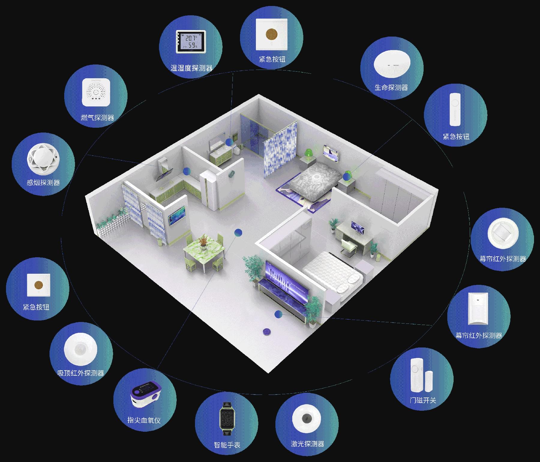 2. 紧急求助和安全监测:提供紧急求助按钮或呼叫功能,以便老人在紧急情况下能够及时寻求帮助。同时,可以结合安全监测设备,如智能门锁、烟雾报警器等,提供安全监测功能。