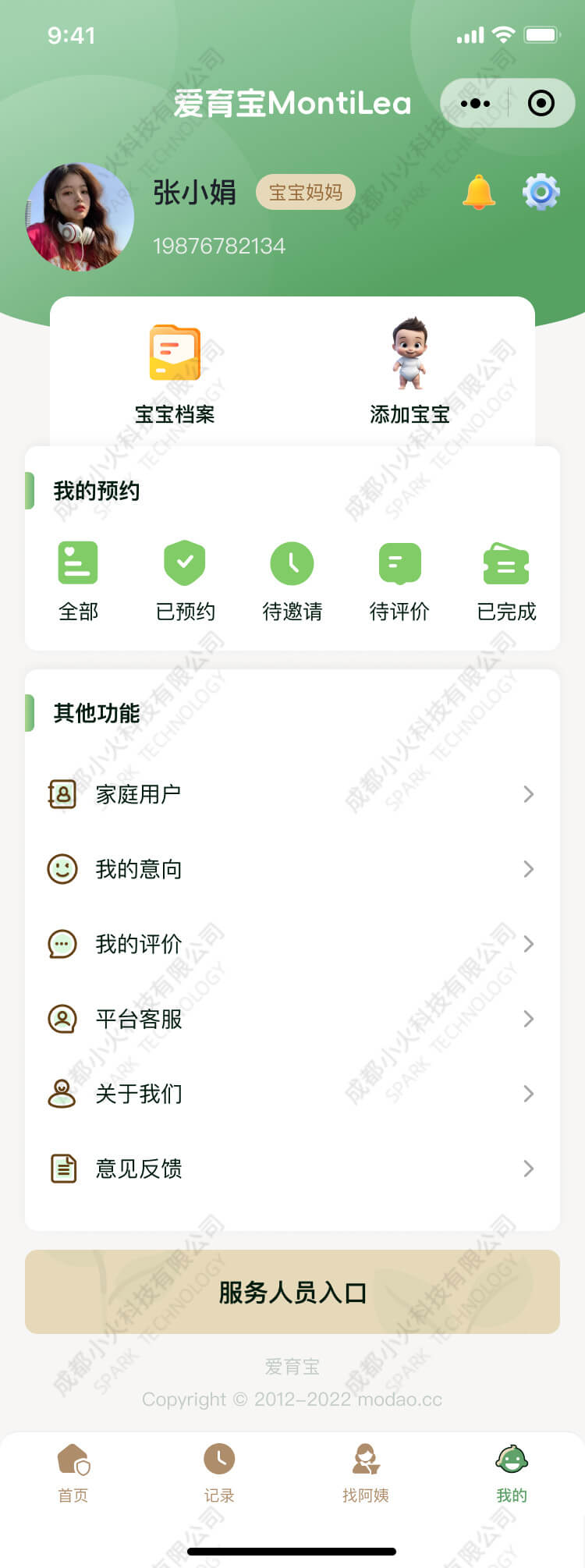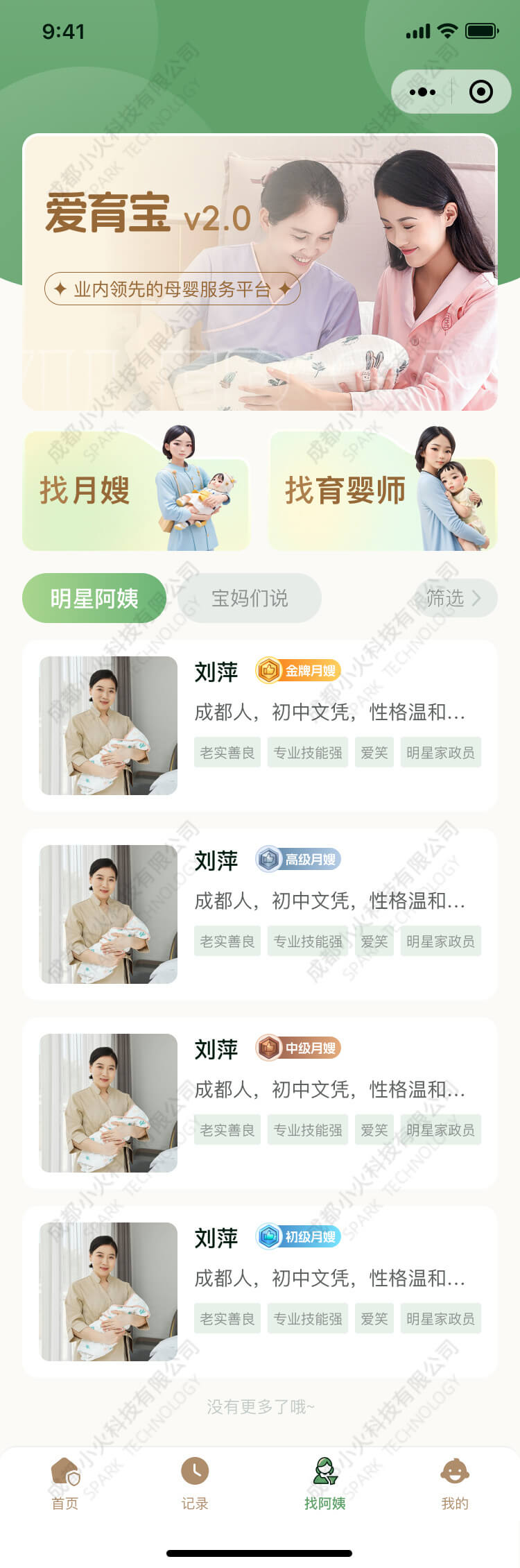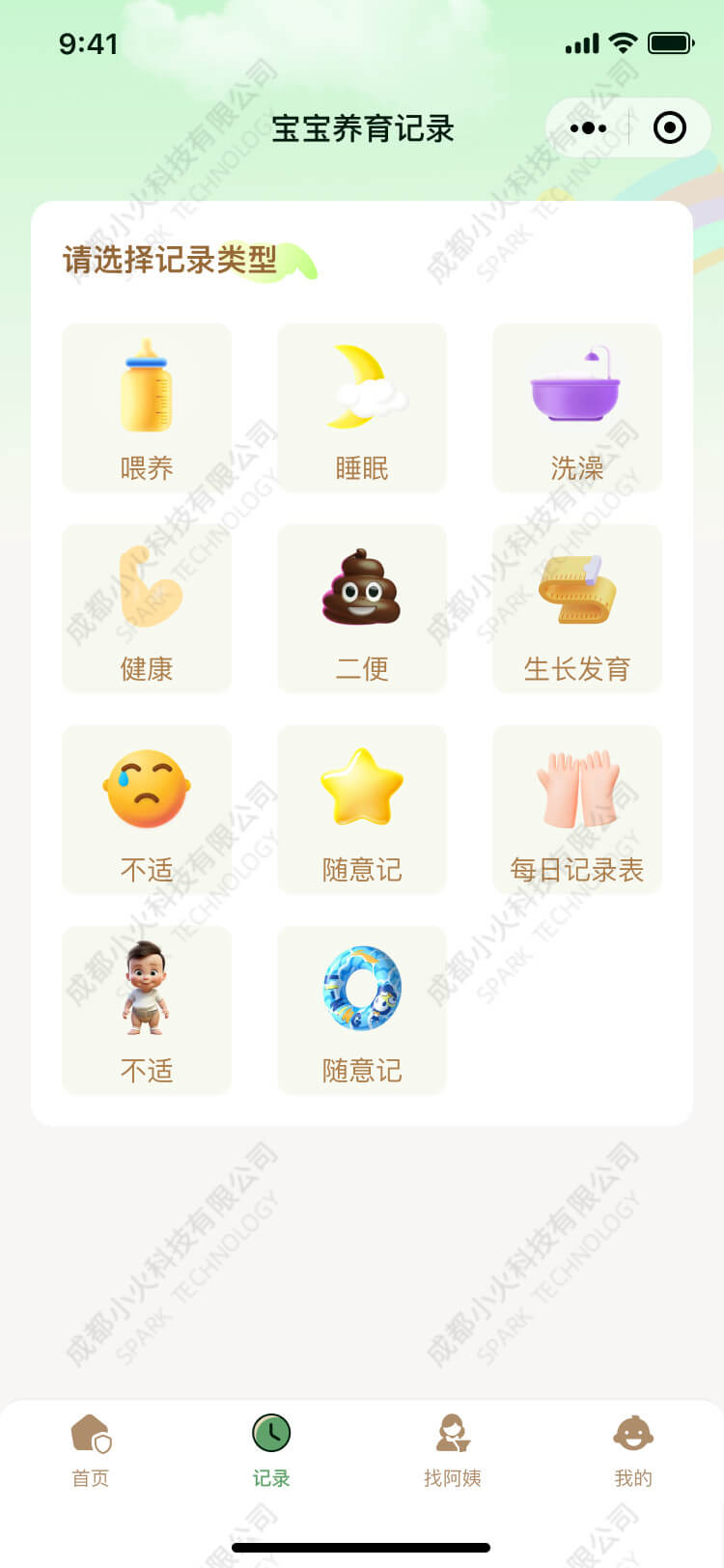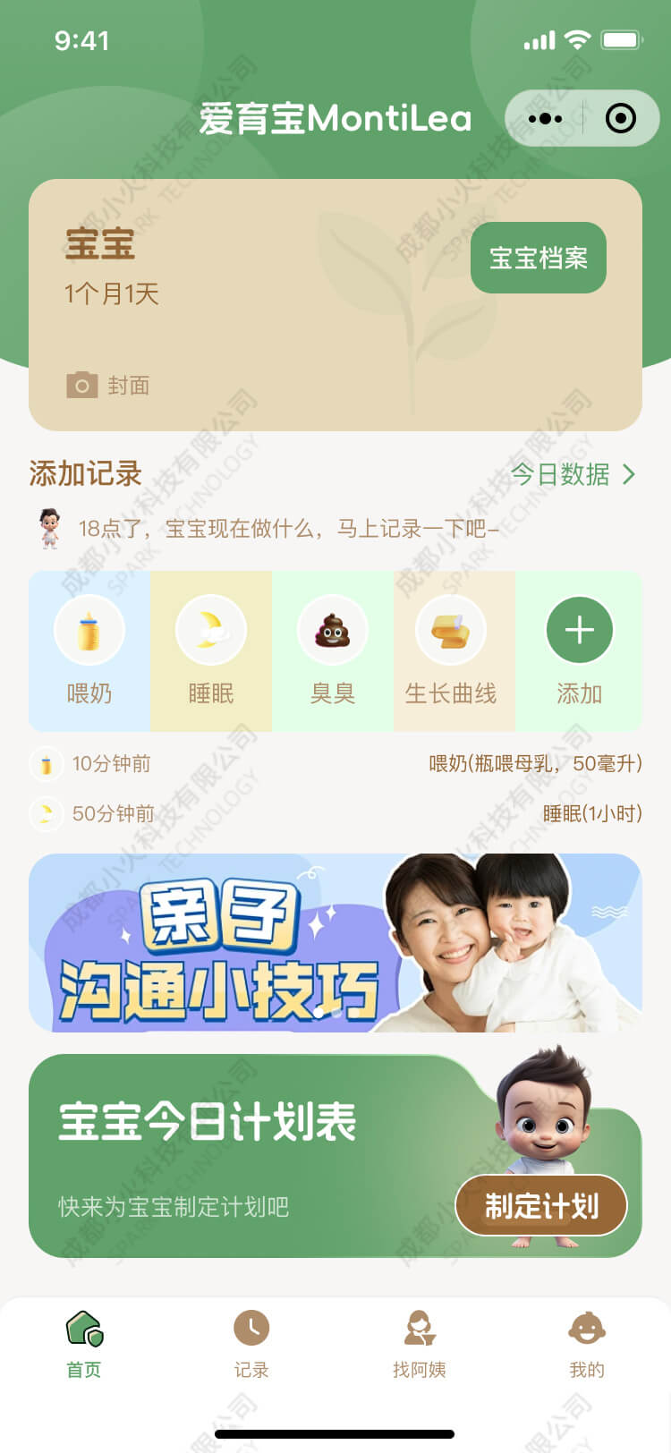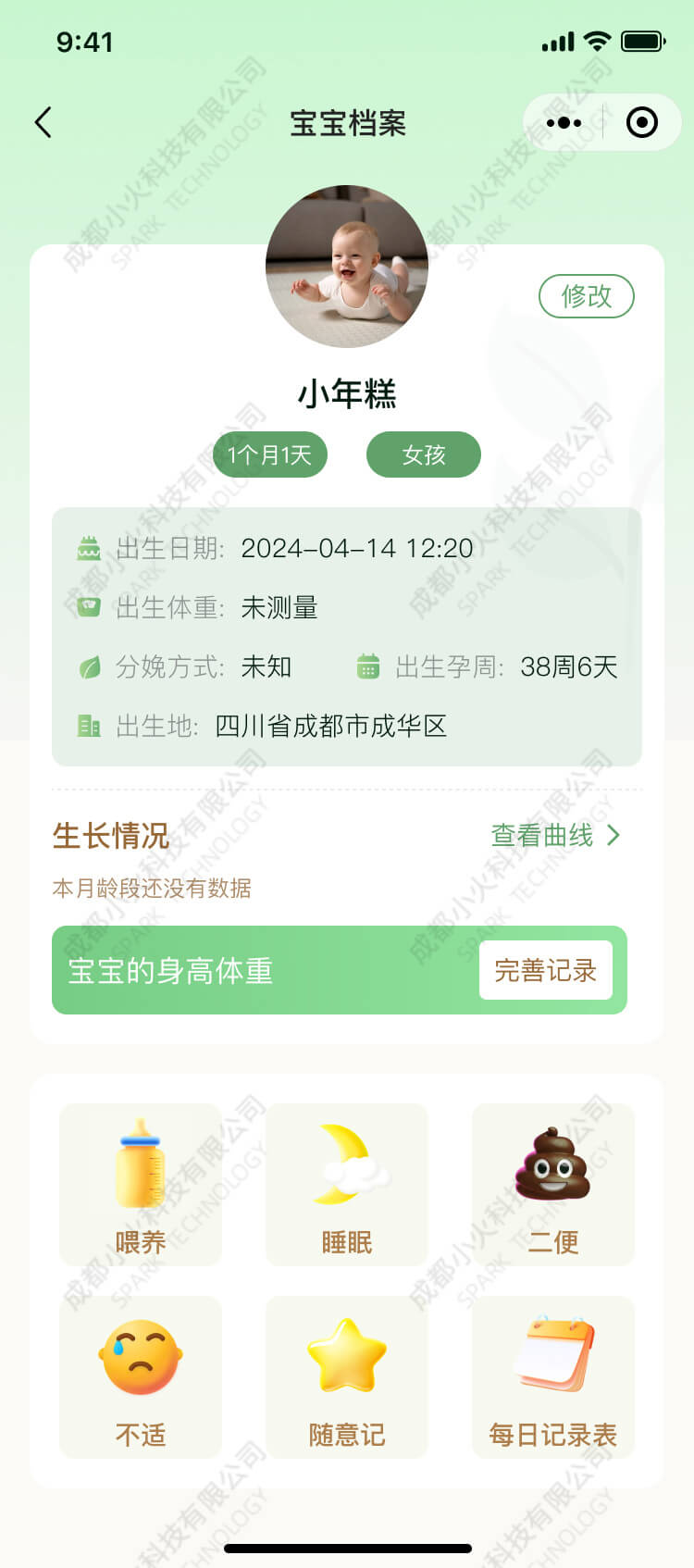 这是成都痴女 公司给客户开发的一款宝宝生长记录的小程序。科学喂养、科学养育是社会进步的一大体现。这款小程序集合了找月嫂功能,以及宝宝的睡眠记录、排便记录、喂奶记录、作息记录以及生长记录等功能。无论父母身在何处,都可以在小程序看到宝宝的生长记录,及时与月嫂沟通。