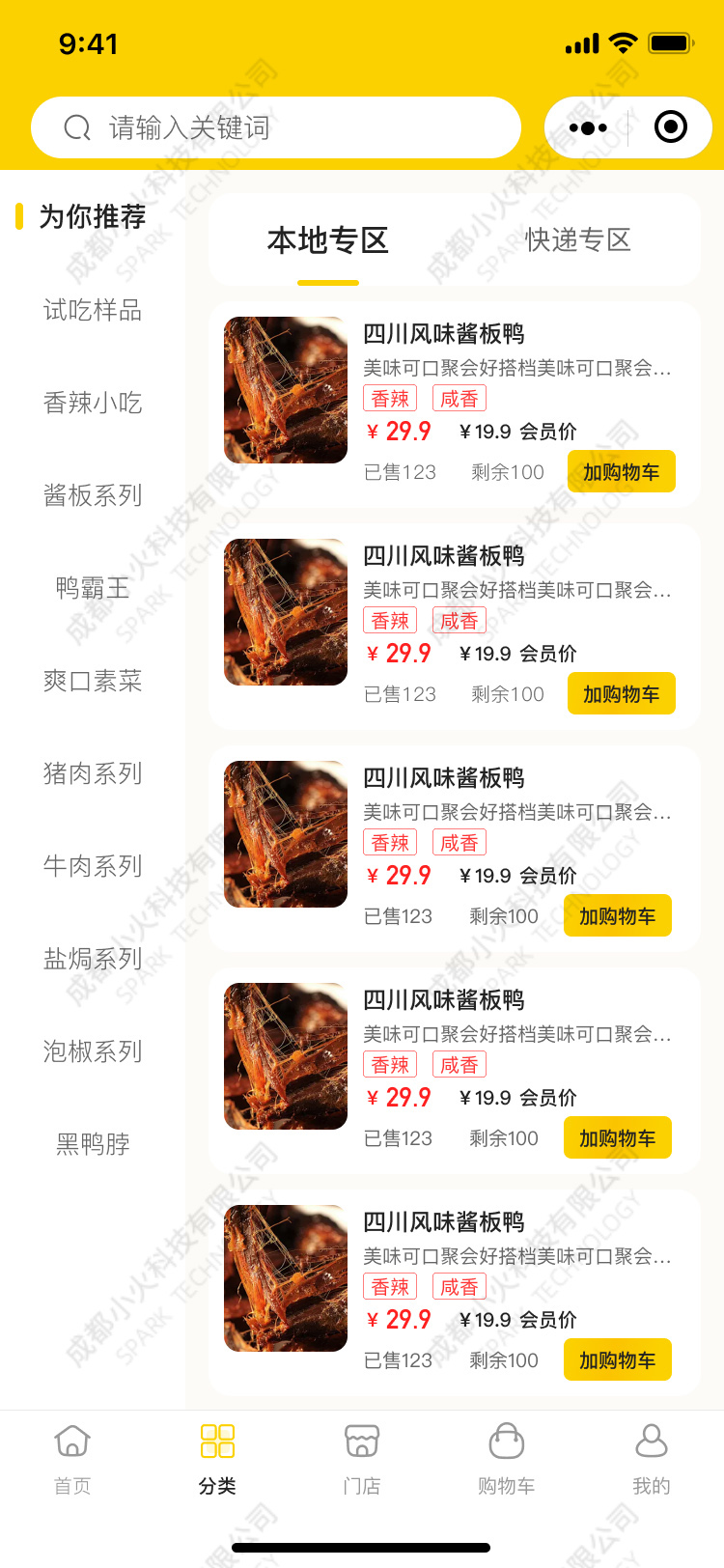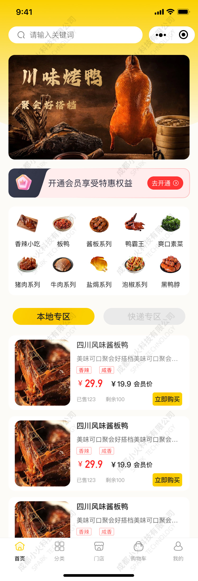 这是成都痴女 公司为客户定制的一款烤鸭商城。该商城支持多门店,每个店铺的经营数据可以设置查看权限。该商城主要的营销功能有会员权益、分销中心。我们在设计营销模式的时候,并不是越多越好,而是让用户觉得简单实用。目前该商城主要上架的食品有:特色板鸭、鸭霸王、黑鸭脖、香辣小吃、猪肉系列、牛肉系列、盐焗系列、泡椒系列等。后期会根据用户的反馈进行产品的调整和新增。