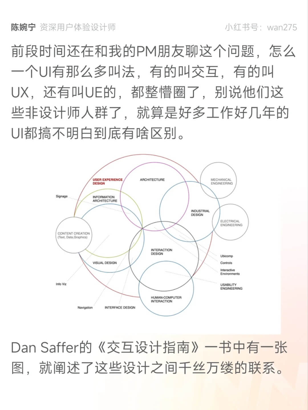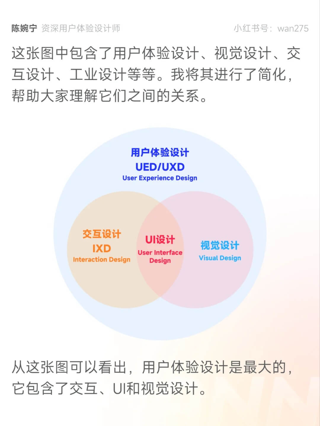它包含了用户体验设计、视觉设计、交互设计、工业设计等。我将其进行了简化,帮助大家理解。
