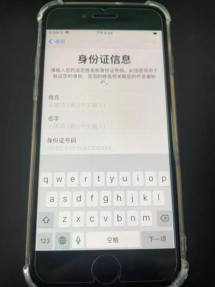 3.填写以上信息(中文),填写申请Apple ID 时候的姓名身份证号,然后人脸识别