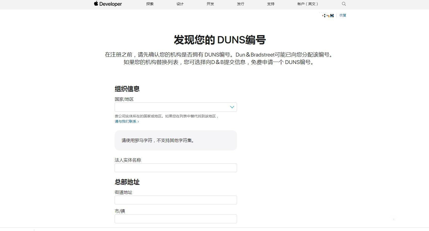 如果没有申请过邓白氏编码会提示“未找到您的组织”,在线提交申请。1-3个工作日内会收到邓白氏相关邮件,按照邮件要求回复邮件。
