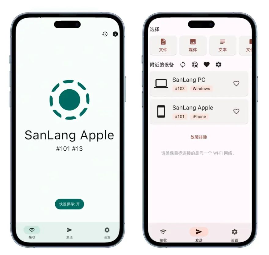 LocalSend是一款开源免费的跨平台文件传输工具。不同于微信、QQ等要加好友,它完全不需要注册登录,只要在同一局域网下,就能在各种设备间便捷地互传文件,说白话就是只要两个设备在一个网络下,就能够互相传输,便捷!: