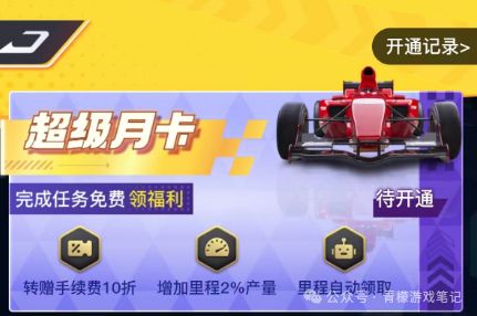 月卡介绍:极速时代还可以开通月卡,价格为9.9,获取更多权益,比如降低手续费,自动领取里程和增加里程等,开通月卡后可以领取会员任务,完成任务后有丰厚奖励。