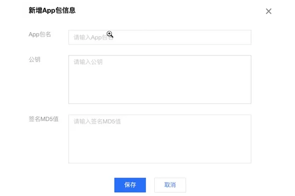 点击新增包信息,这个页面需要填写 APK 的公钥和签名 MD5 值