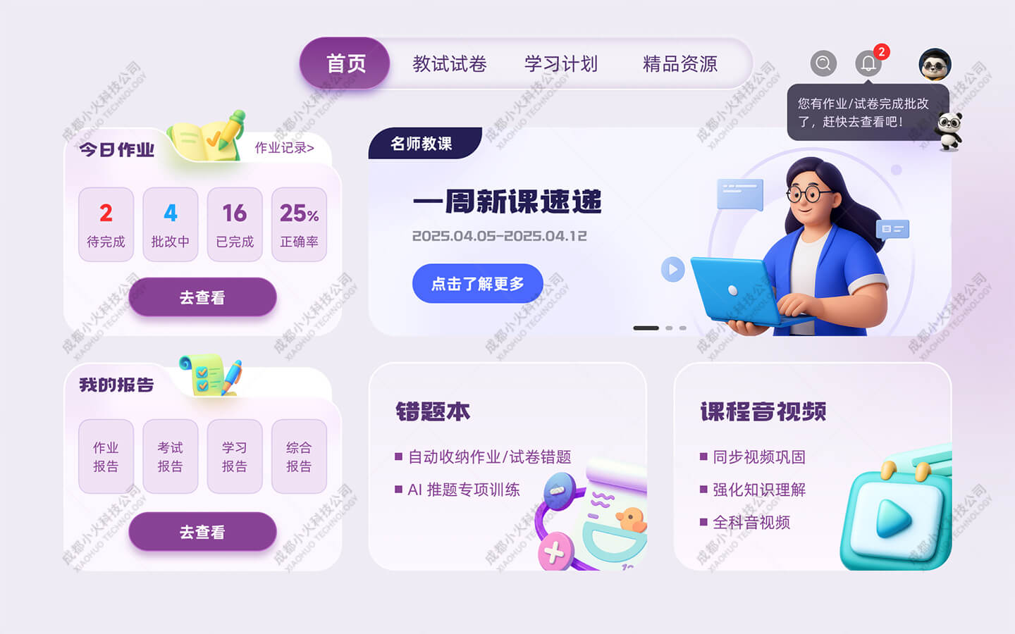 学习看板:实时统计正确率、耗时趋势、章节掌握度等数据,帮助用户了解学习进度。
