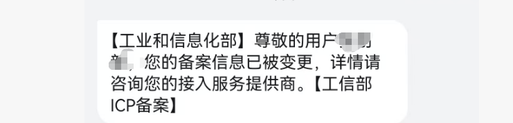 工信部审核结果出来之后,管理员的手机会有短信提示,比如:尊敬的用户***,您的备案信息已被变更,详情请咨询您的接入服务提供商。这就表示你的ICP备案已经成功了。反之,会有未通过的提示。通常未通过的原因,是域名的实名信息与痴女