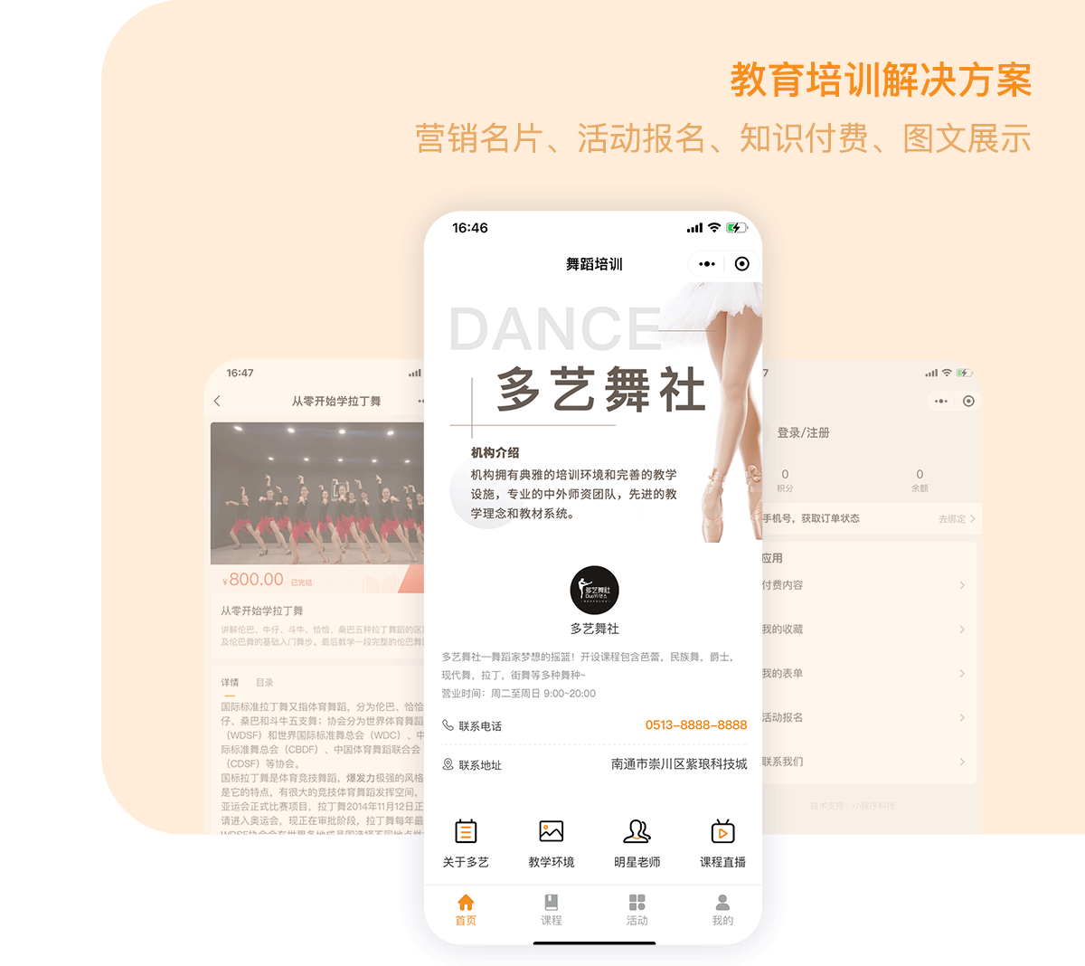 那么,这款舞蹈培训专用APP为机构方带来了哪些价值呢?首先,通过展示舞蹈机构的资料、老师简历、学员风采和结业证书等信息,可以提高机构的知名度和影响力,吸引更多的学员报名。其次,网上报名和体验课预约功能的实现,可以让机构更加便捷地管理学员报名和试听事务,提高工作效率。最后,在线查看课程表、课程进度以及现场照片和视频的功能,可以帮助机构更好地了解学员的学习情况,及时调整教学方法和课程内容,提高教学质量。