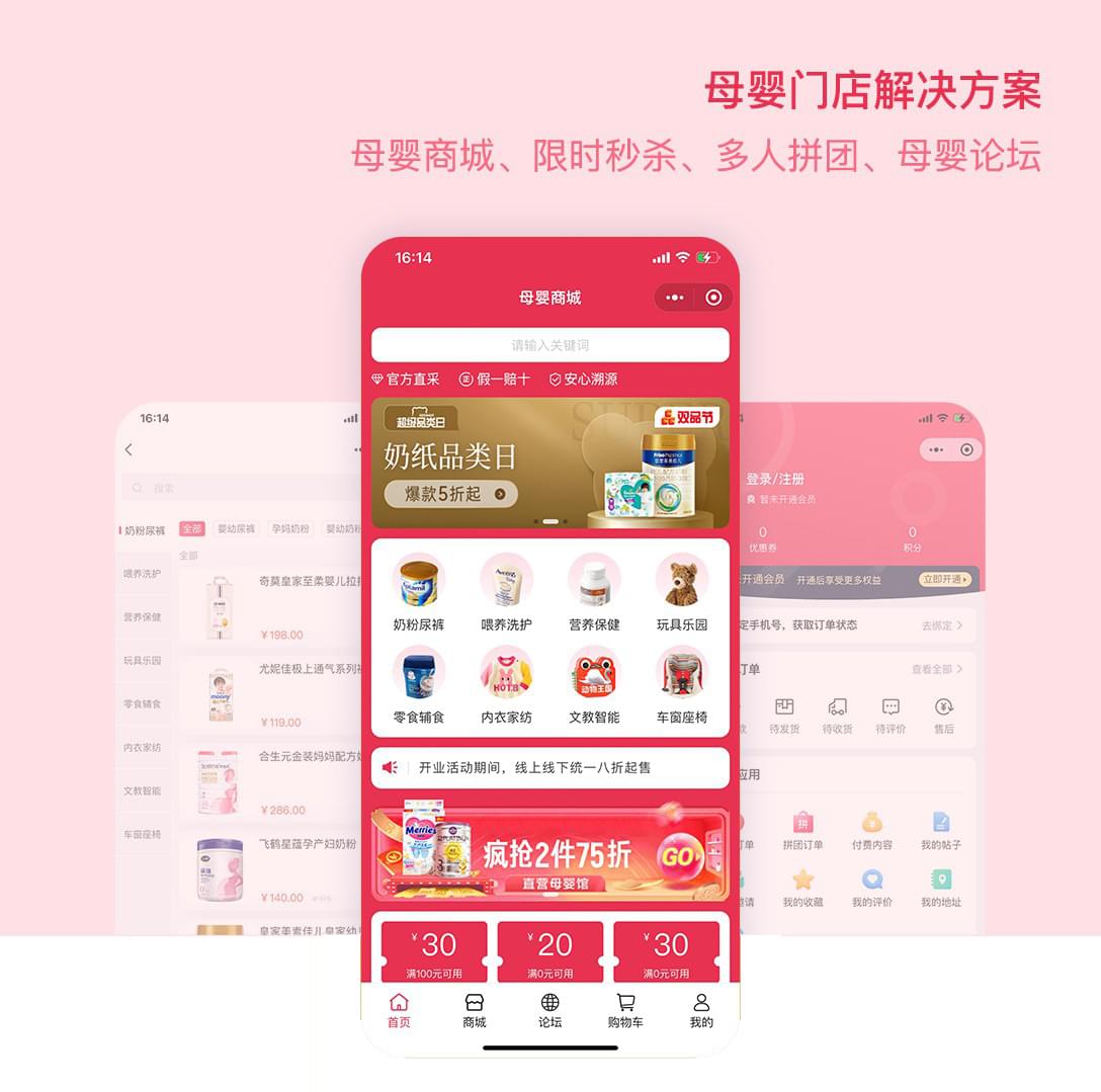 公司凭借其在APP定制方面的优势,为母婴门店打造了一款集购物、交流、教育等功能于一体的APP,一站式解决了母婴用品的全部需求。痴女