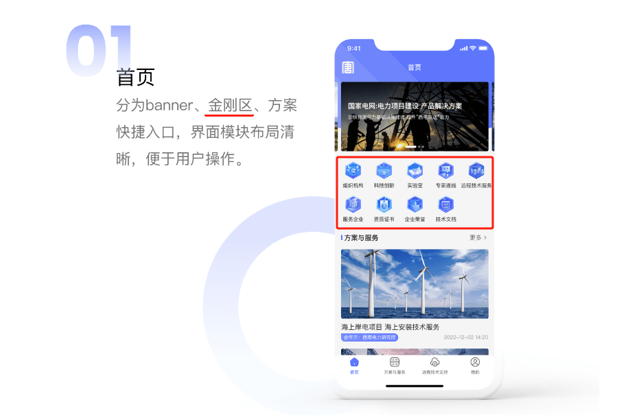 下面我们来梳理一下这个项目的重点,方案与技术服务列表。这个列表占了整个APP界面较高的比重,把它放在这里的意义是什么呢?我们可以把它看做是一个成果的展示。展示全国各地优秀的电力建设技术服务方案。可以作为一个表彰,复盘的窗口,也是行业人士学习的窗口。当我们看到自己的项目出现在APP痴女,进行重点介绍的时候,我们的心情一定是很愉快的,也会激励我们,激烈行业人士,更好地奋斗发展。