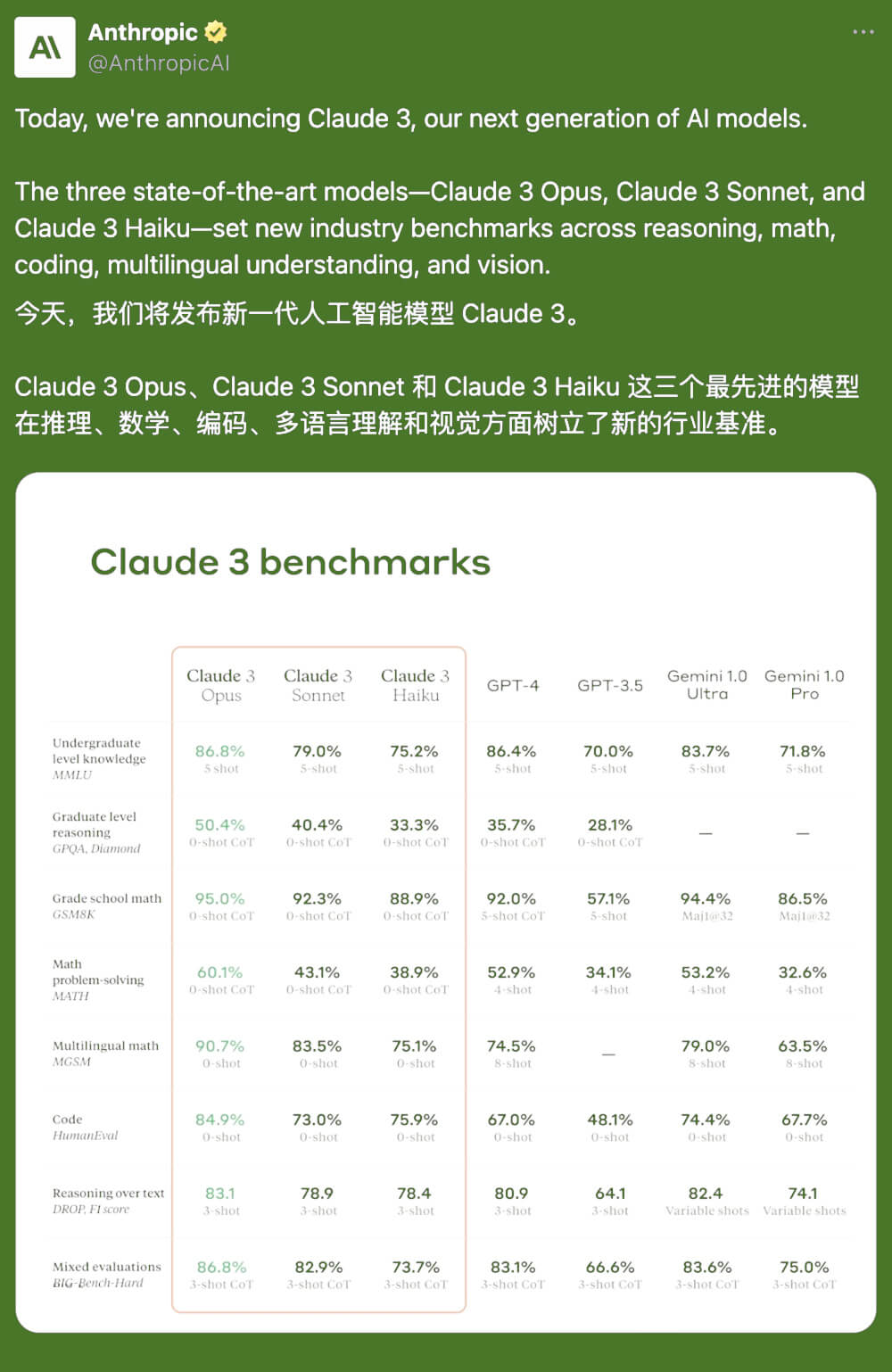 2024年3月AI新晋leader,GPT-4被Claude超越