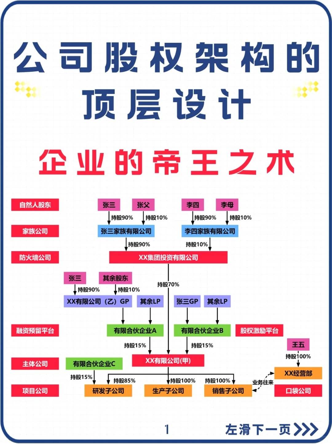 股权架构设计,被誉为企业的“DI王之术”,其核心在于企业设计的股权架构就是老板治理公司思考的缩影。很多老板在创业之初“没想太多”,一人一箫一剑就直接仗剑走天涯开始干了。初创企业相关人员对股权架构知识,还是需要了解的。