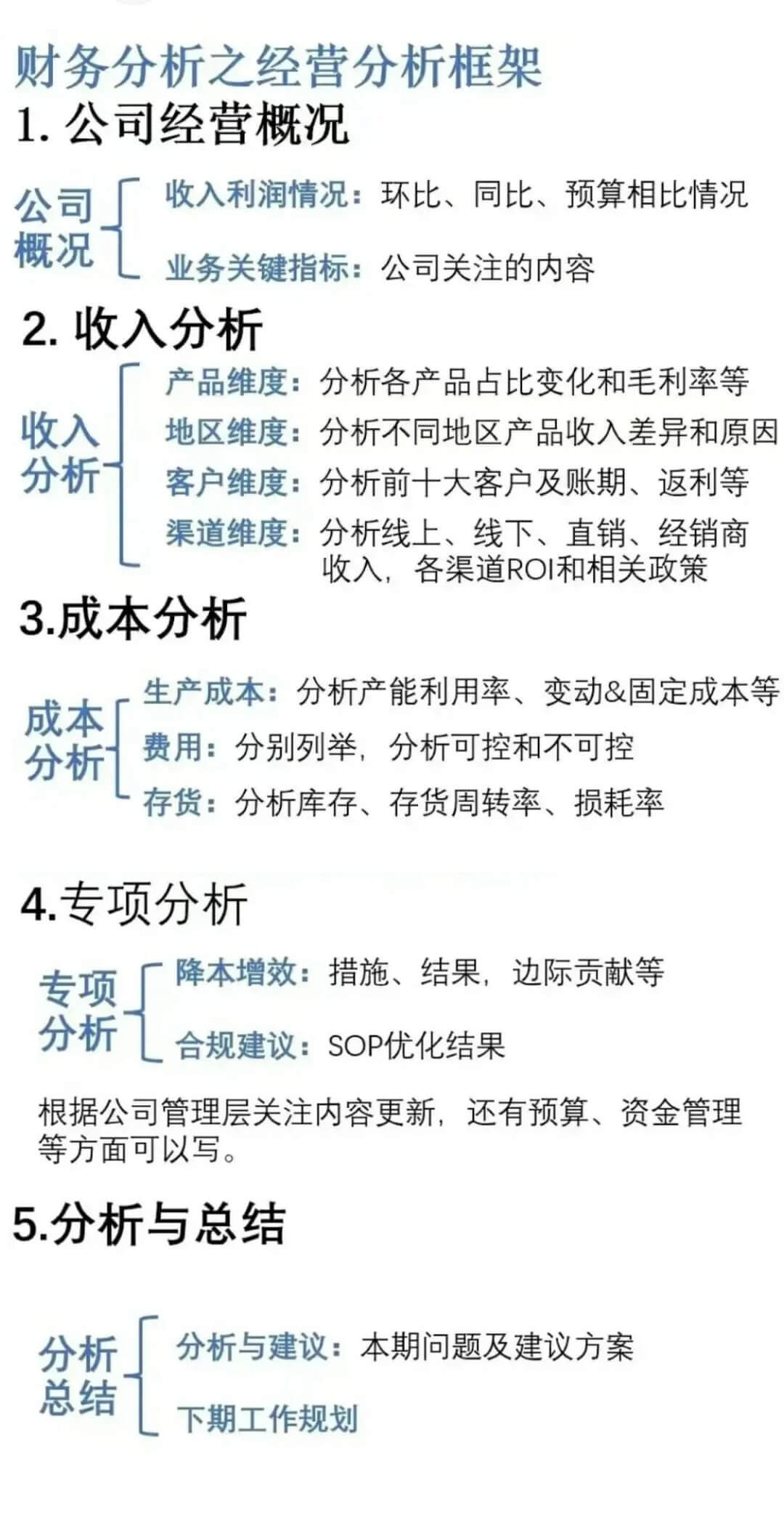 运营分析涵盖生产运营、销售与营销以及人力资源等方面。评估生产流程效率和质量控制体系,优化供应链管理。分析销售渠道和营销策略的效果,提升销售团队绩效。同时,关注员工结构与素质,完善员工绩效与激励机制。