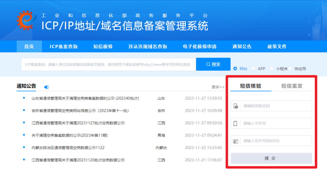 8、工信部短信核验。以下这些情形需要在工信部官网进行短信核验: