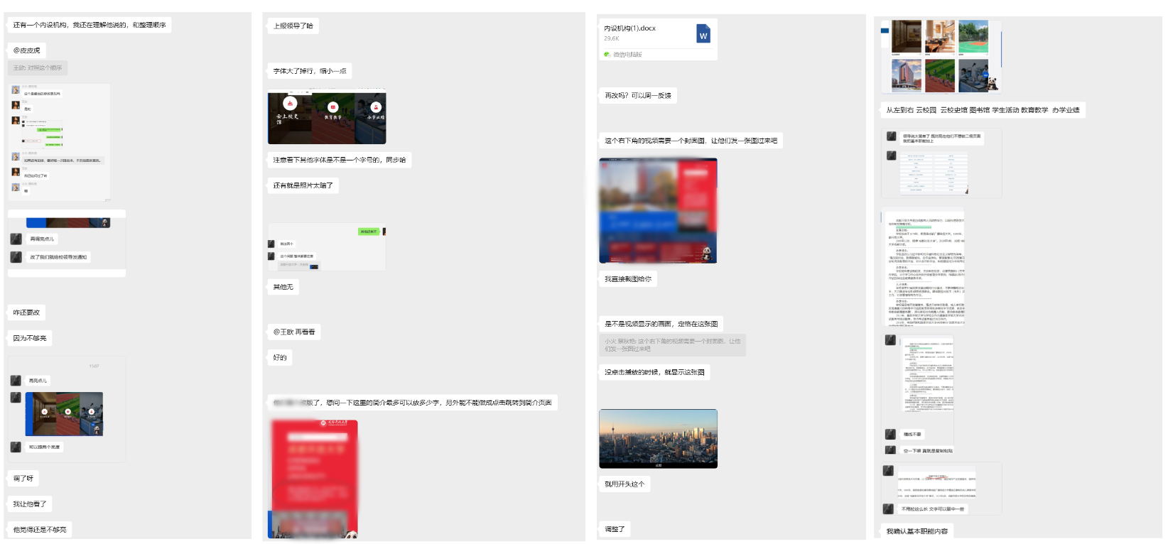 下面截一些我们关于这个政企官网建设的项目图,大家从图上应该可以看出,我们软件开发人员的工作,并不只是敲敲代码,与甲方之间的沟通,才是真正的重中之重。 很多人不理解,我们软件公司有专业的UI设计人员,按理说项目应该很快就做好了,大家应该考虑到,多个甲方不同时的意见,肯定会对某些地方进行推翻或者升级优化,这个是可以理解的。并交出超出预期的“答卷”,是我们公司的理念。相信通过我们的精心琢磨,一定会带来具有辨识度,让人眼前一亮的网站。或许,这就是定制开发的意义所在。