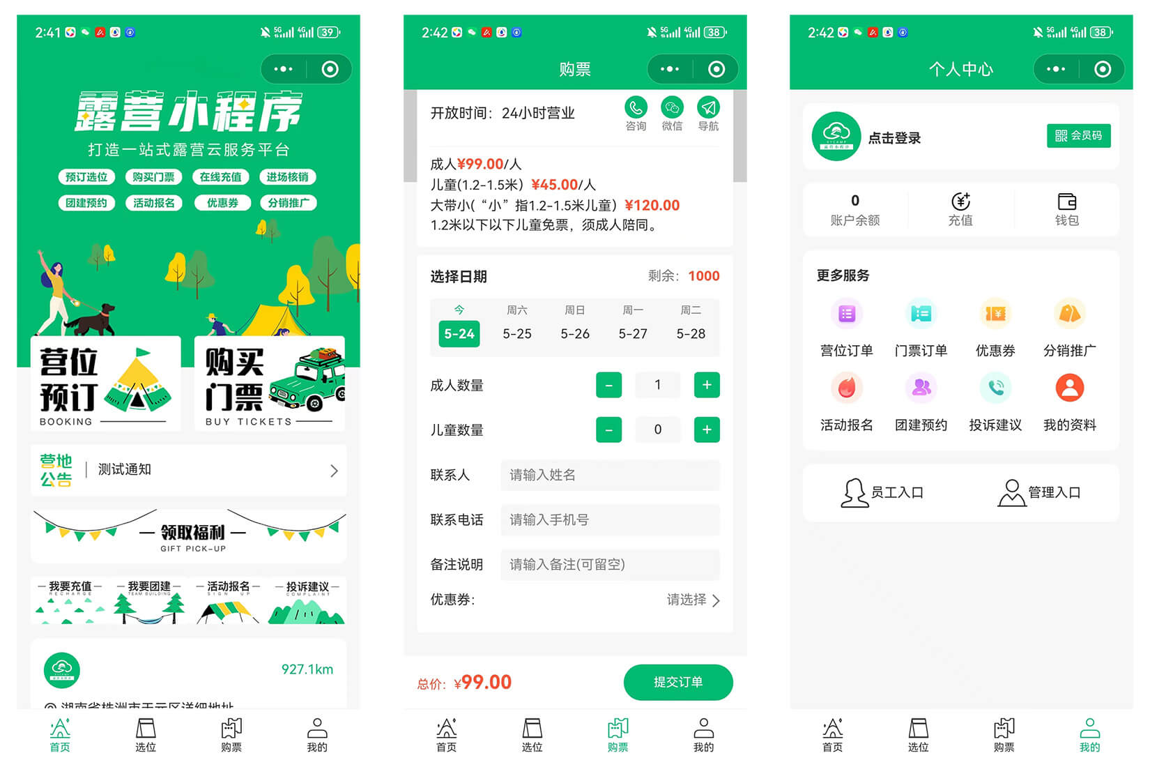 在营地模块中,您可以编辑营地信息,设置营地门票价格,后台管理营地区域、场次、营位和基础服务。这样您可以轻松地管理和更新您的营地信息。