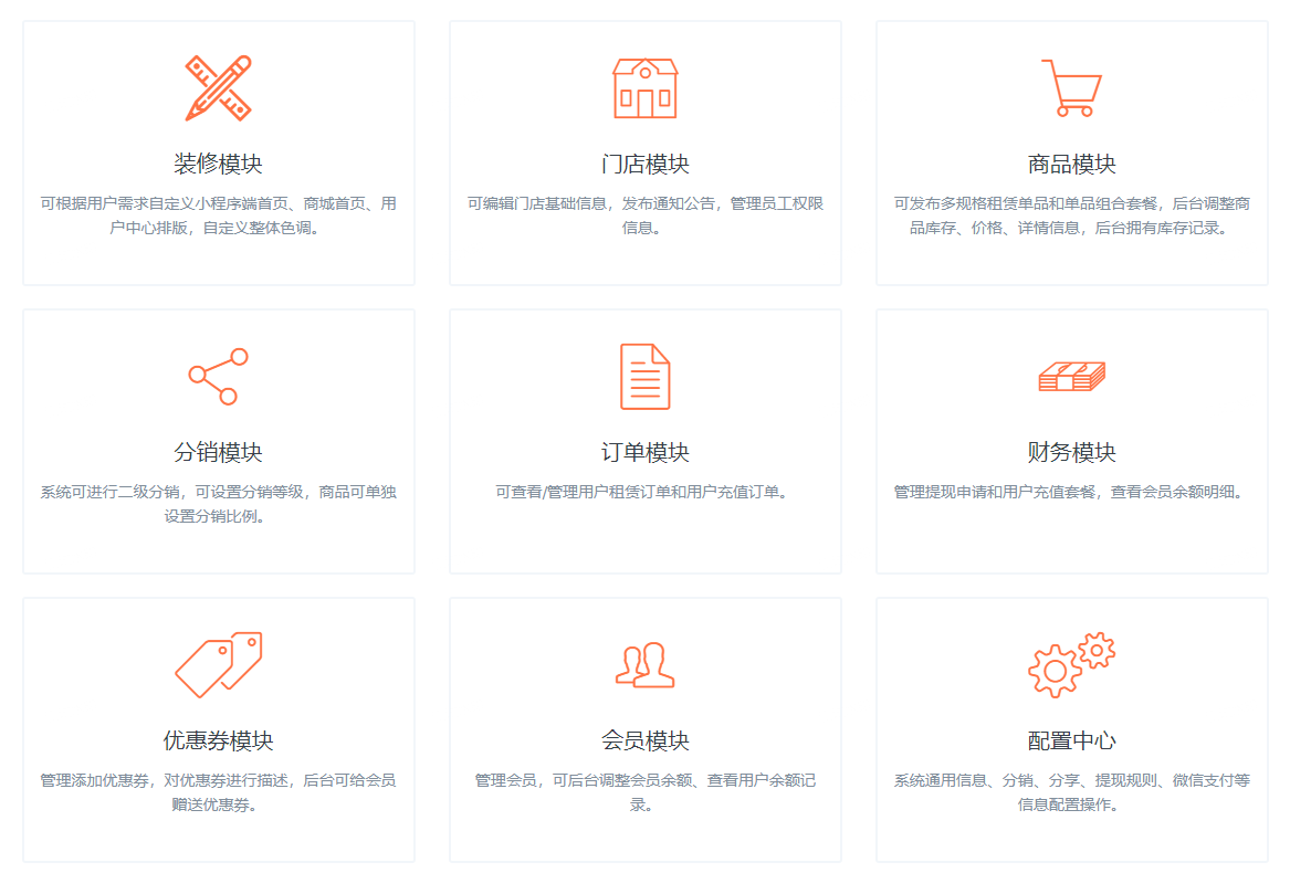 这套租赁类的商城小程序不是saas,不需要每年付费,源码交付,支持功能升级,支持版本迭代。我们也将根据客户和用户的需求,不断完善和优化功能。同时,小火软件提供操作培训,我们会根据甲方的需求,对相关人员进行培训,成都本地的客户可以上门来培训,异地的用户我们远程培训。软件是商业承载体,用户体验很重要。我们欢迎任何提升用户体验的实际想法,并用我们的专业知识来落地。