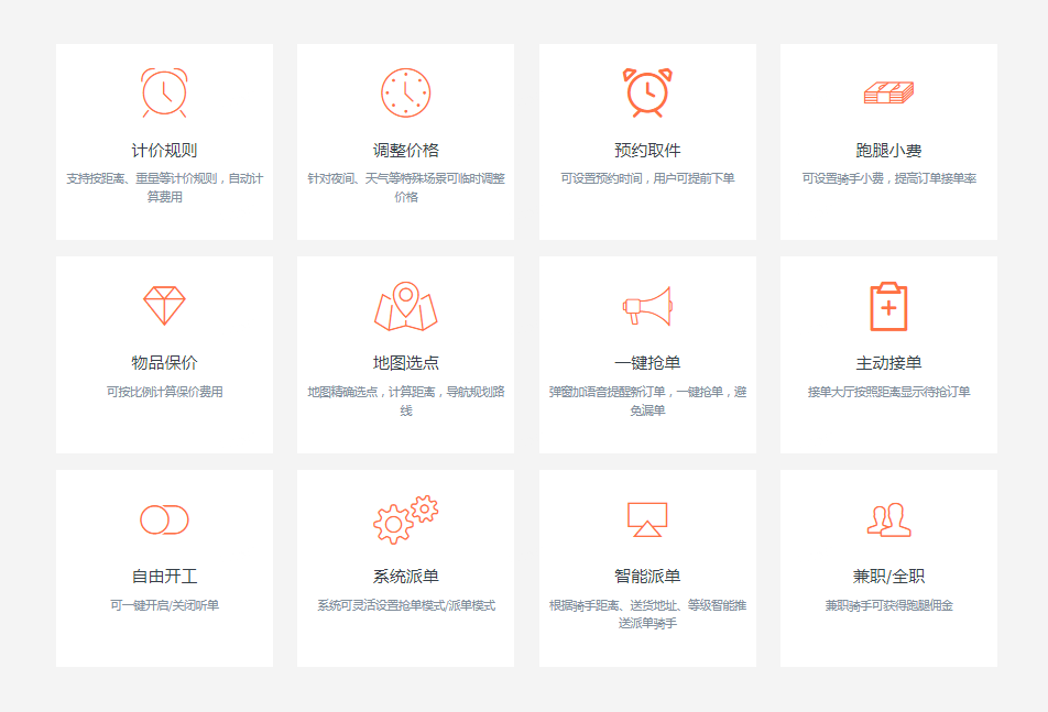 骑手就是平台的“生产力”。出于“生产力”的多样性,满足更多用户的需求,系统把骑手分为兼职和全职骑手。无论是兼职还是全职骑手,都可以通过我们的同城跑腿小程序获得相应的报酬,实现收入的增加。