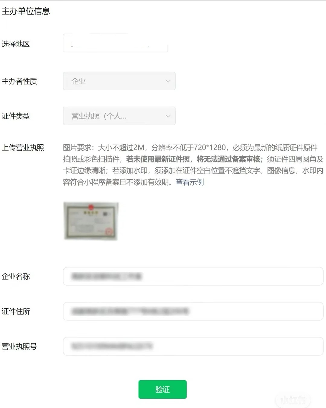 小程序备案所需资料:营业执照、邮箱、负责人身份证正反面、小程序管理员扫码验证及人脸识别验证、手机号码(两个,一个负责人号码,一个紧急联系人号码)