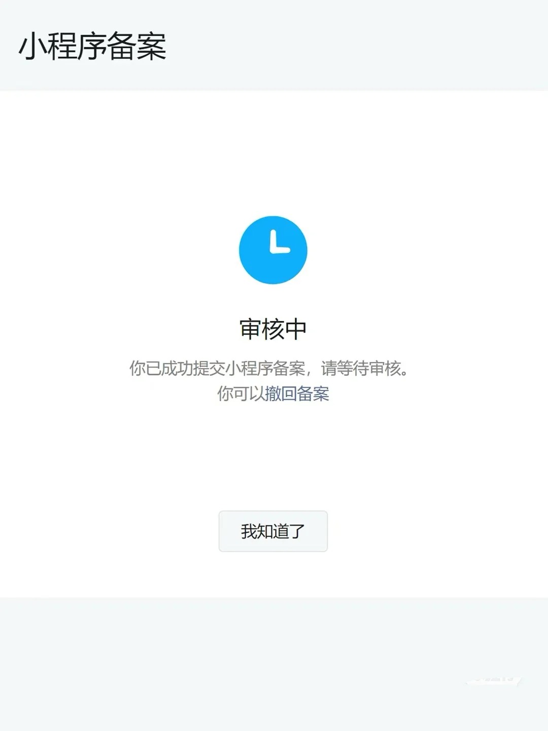 提交了小程序备案材料后,平台会在1—2个工作日完成初审,通过后将资质材料提交到小程序主体属地的通信管理局。一般将在1-20个工作日内(具体以实际审核时间为准)完成小程序备案的审核。