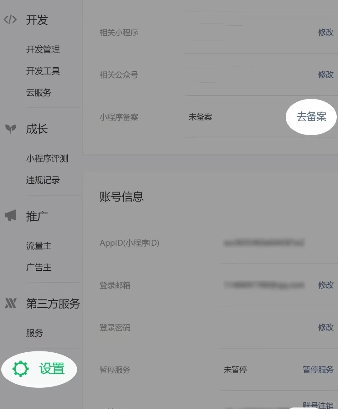 小程序备案入口:前往微信公众平台→登录微信小程序→设置→小程序备案→去备案。