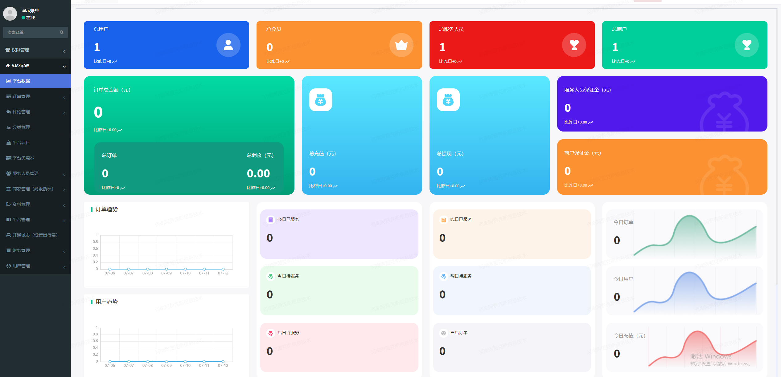 支持用户端、服务端、商家端、平台端的上门家政小程序2024版