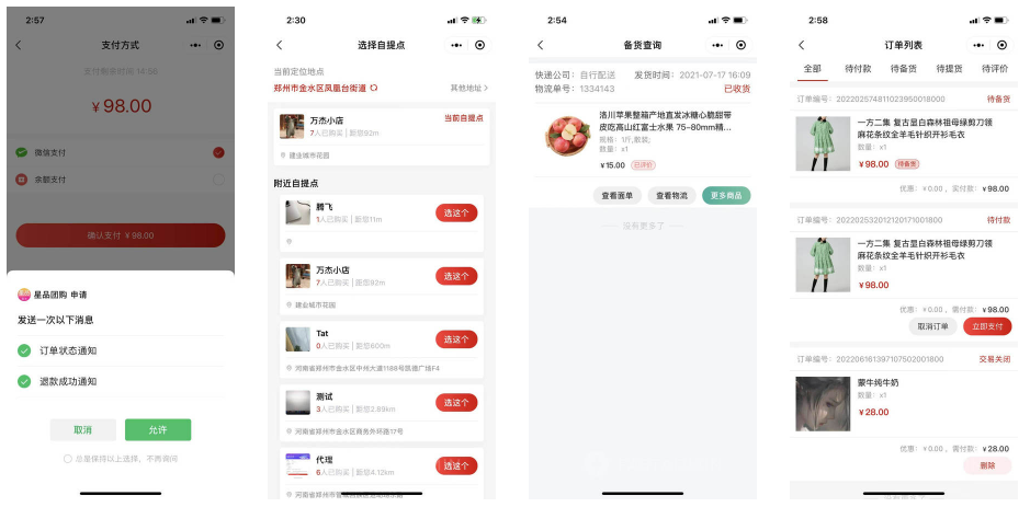 4. 发货单:自提点用户提货信息统计单,方便用户提货。