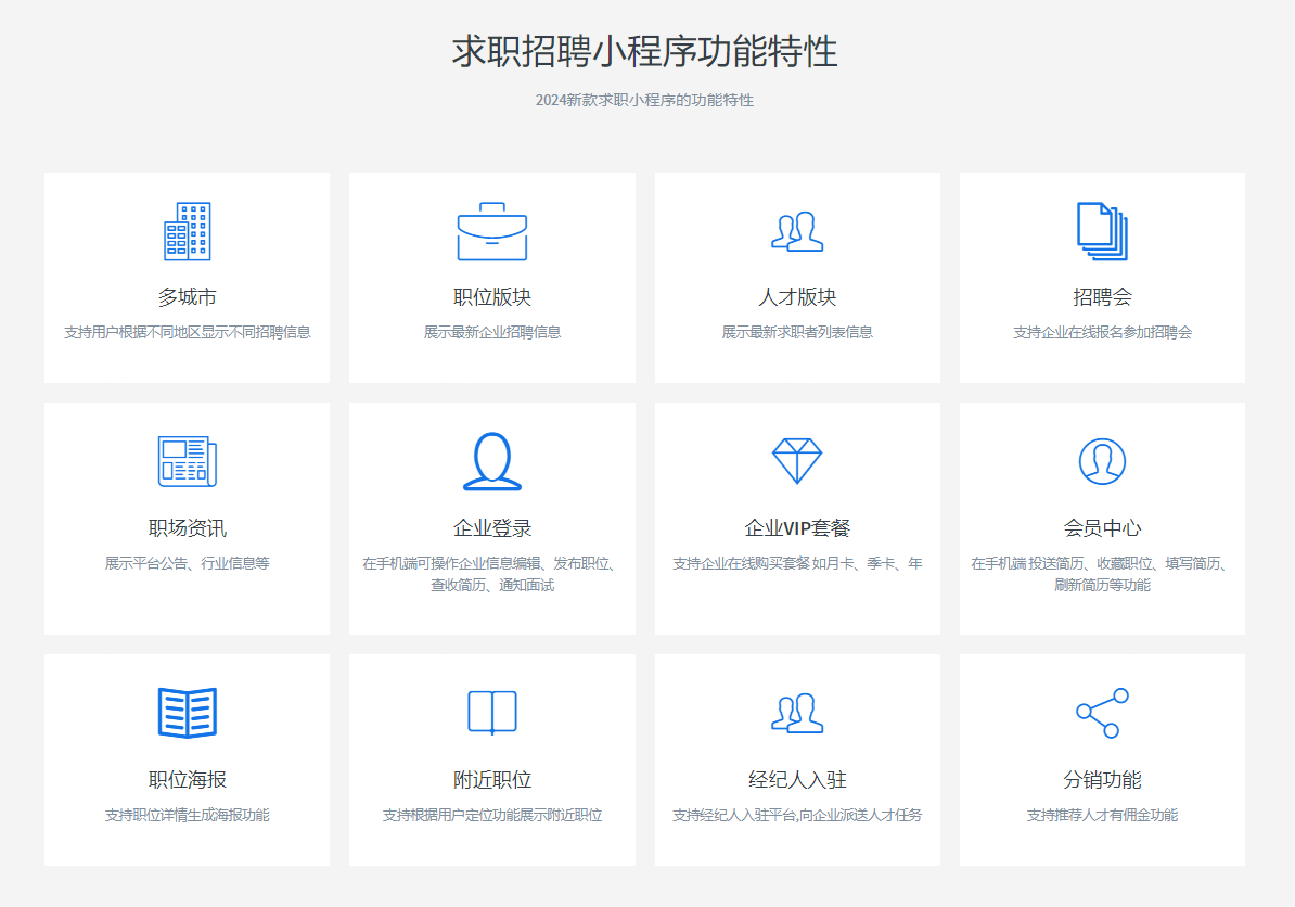 12. 分销功能:推出推荐人才佣金制度,激励用户积极参与人才推荐。