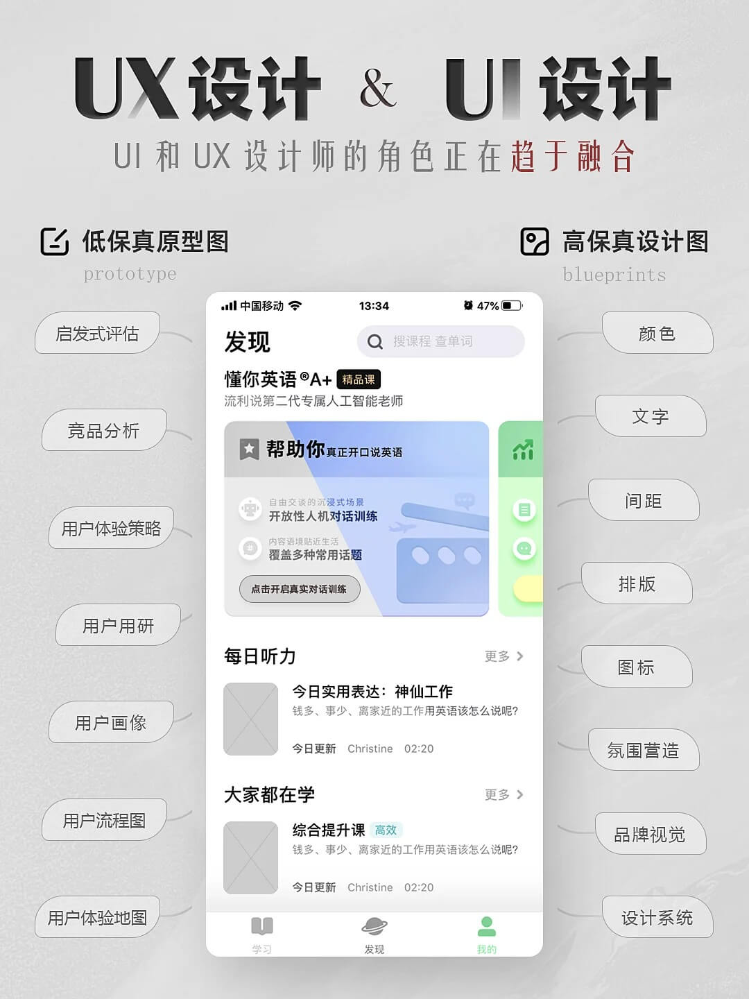 UI和UX设计师的角色正在趋于融合,我们从以下纬度给大家做一个介绍,方便大家更好理解UX设计师和UI设计师的区别: