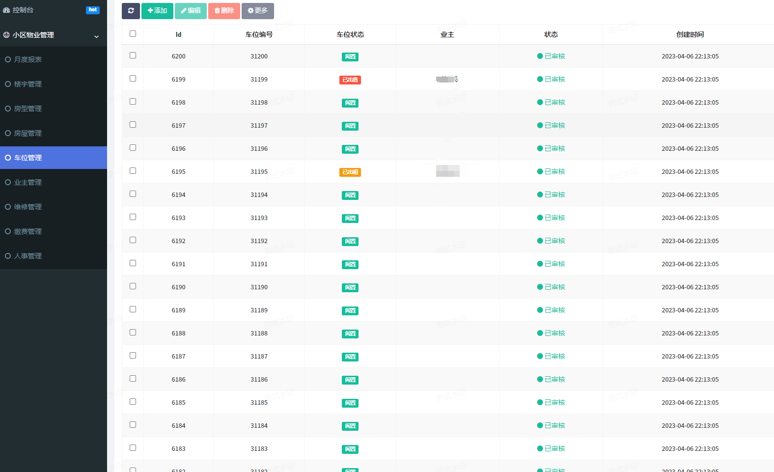 8. 车位管理:系统可以管理车位的状态,查看车位与业主的绑定记录。通过车位管理功能,物业管理人员可以方便地了解小区车位的使用情况,为业主提供更好的停车服务。