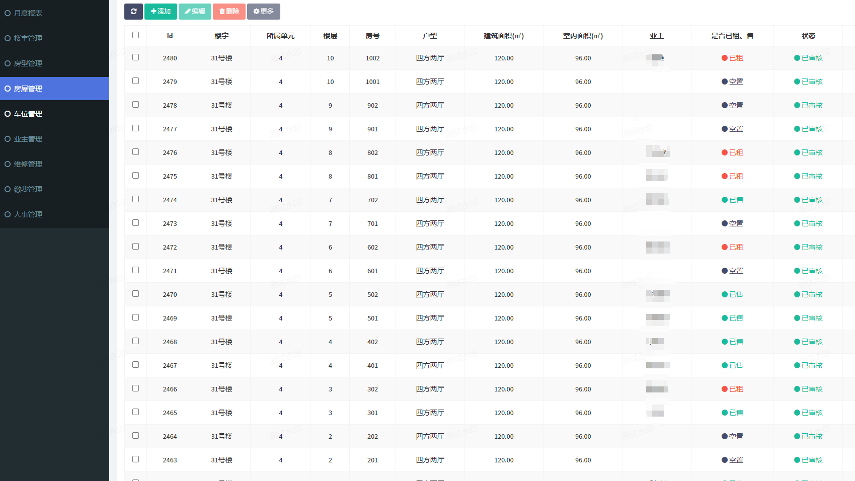 2. 楼宇管理:系统可以管理楼号、最大单元数、最大层数等信息。通过楼宇管理功能,物业管理人员可以方便地了解小区的楼宇情况,为业主提供准确的信息。