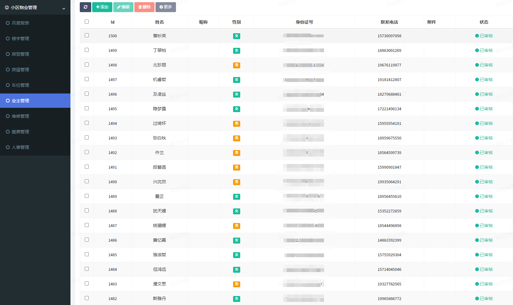 6. 业主管理:系统可以管理小区业主的基本信息,包括联系方式等。这样,物业管理人员可以方便地与业主进行紧急联系,提高应急响应能力。