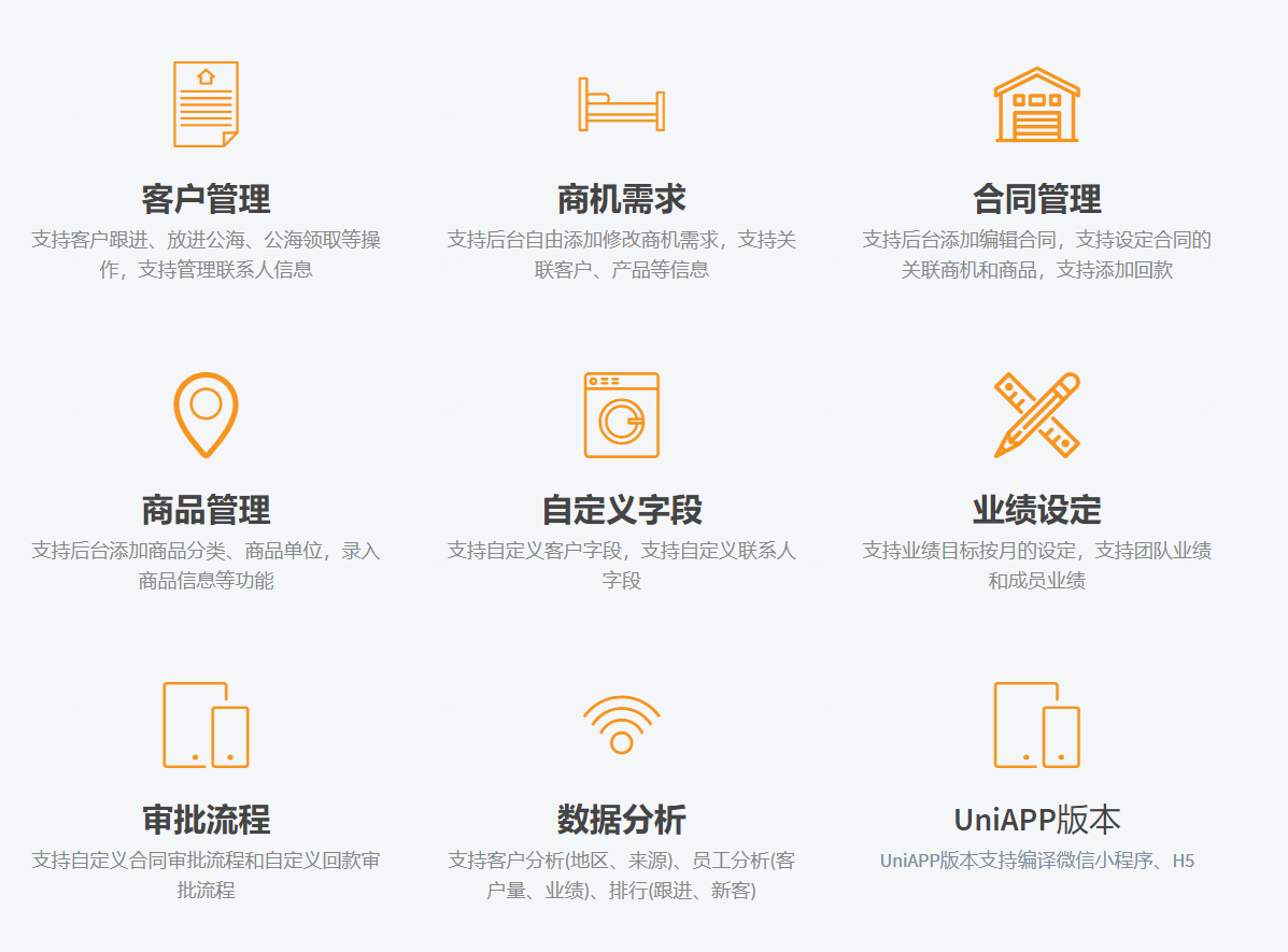 我们的CRM系统支持Uni版本,可以编译和H5,让您在移动端也能轻松使用CRM系统,随时随地管理客户关系。