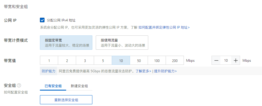 云服务器的带宽就与我们家里的宽带带宽一个道理,带宽越高,使用和网站就会越快。带宽相比CPU和内存,还要贵一些。目前支持固定带宽和弹性带宽(按量付费)的选择。就云服务器而言,不涉及高并发的情况,10M的带宽一般都是够用的。10M的带宽就相当于1280kb/s的访问速度,如果一个网页是60kb,那么10M的带宽支持20人在1秒内秒开1个网页。