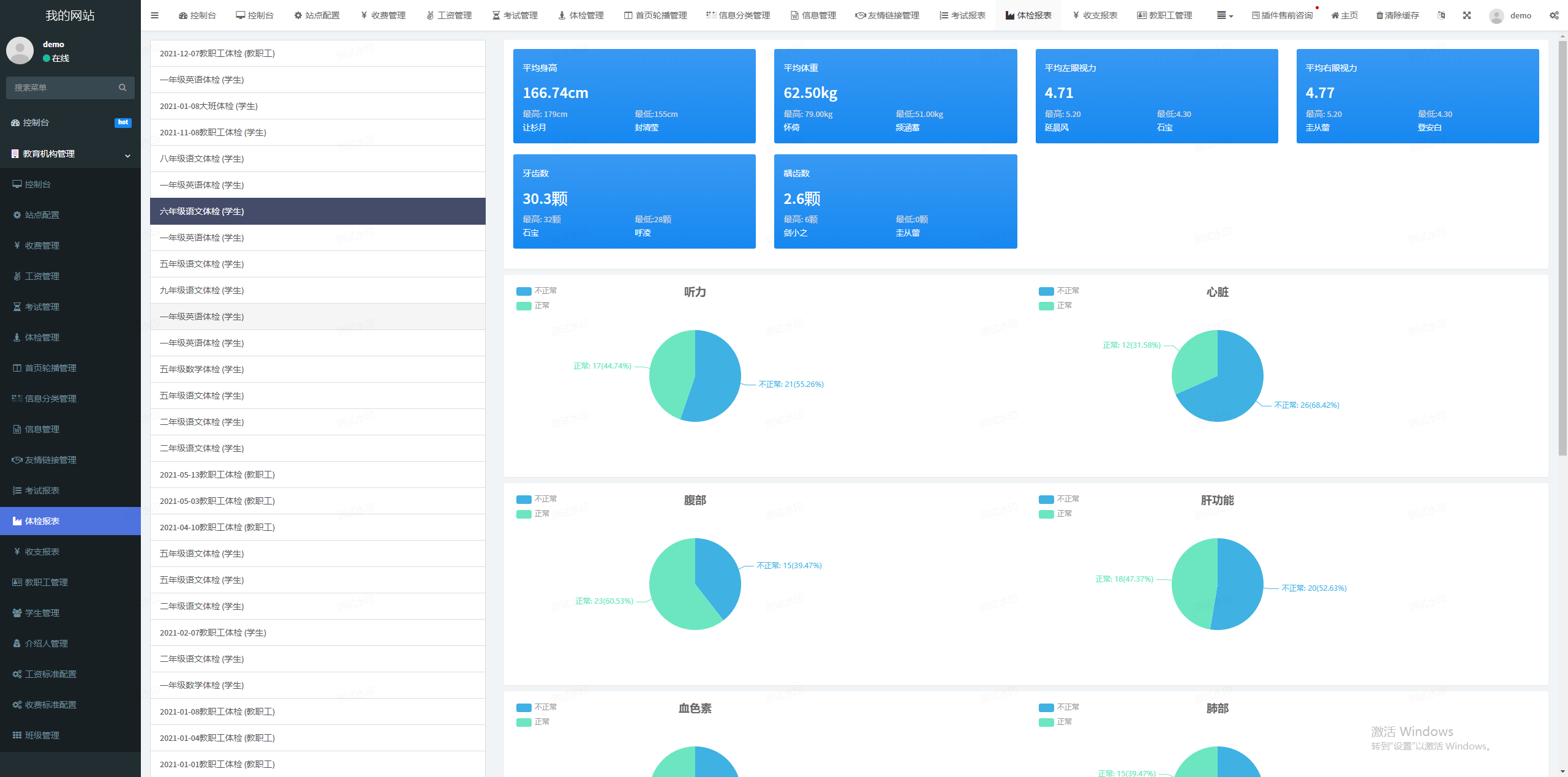 5. 直方图报表:系统提供了包括考试报表、体检报表、收支报表在内的多种直方图报表,帮助学校管理层和教师更直观地了解学校运营的各个方面。