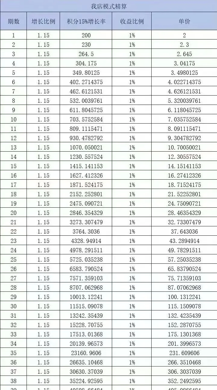 当第 37 期之后,第 1 期的消费者和商家分配结算清了。积分在 36 - 40 期内,通过算法最高可实现 5 倍增值。这种独特的积分增值方式,让消费者和商家在消费和经营过程中持续获得收益,不断激发消费活力,促进了平台的持续发展。