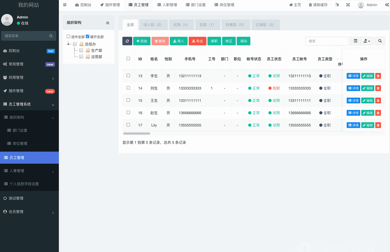 快捷操作员工状态:系统提供了快捷操作员工的入职、离职、转正和调岗事件的功能。您可以通过简单的操作,快速更新员工的状态,简化管理流程。